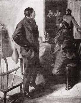 马文队长搜查了一番,不过显然没有发现隐藏铸币机的痕迹。他走下楼来,和一干人把麦克默多押送到总署去。天色已经昏黑,刮起一阵强烈的暴风雪,因此街上已经很少行人,只有少数几个闲逛的人跟在他们后面,壮着胆子大声诅咒被捕者。
